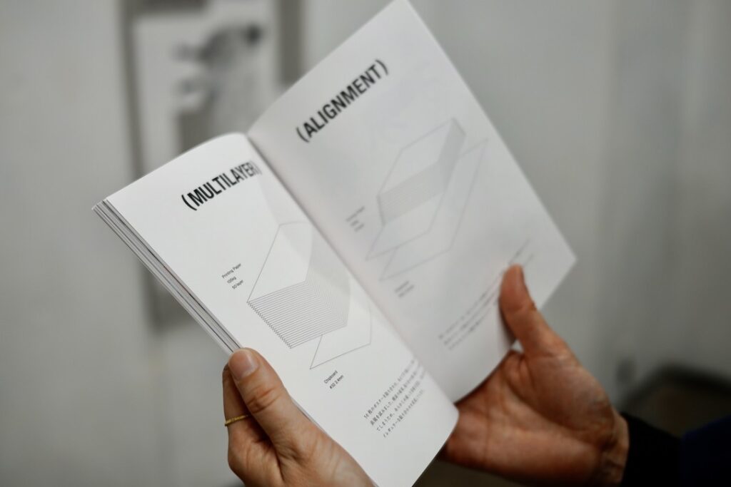 デザインパーソンさんには、これまで弊社の会社ロゴやWebサイト、オリジナルボードゲームのイラストなど、さまざまなデザイン面でお世話になっています。本展では、そうしたこれまでの取り組みを起点に、さらに一歩踏み込んだ表現として、実験的な紙加工の作品を展示していただきました。今回のメイログでは、そんな展覧会の様子をお届けします!