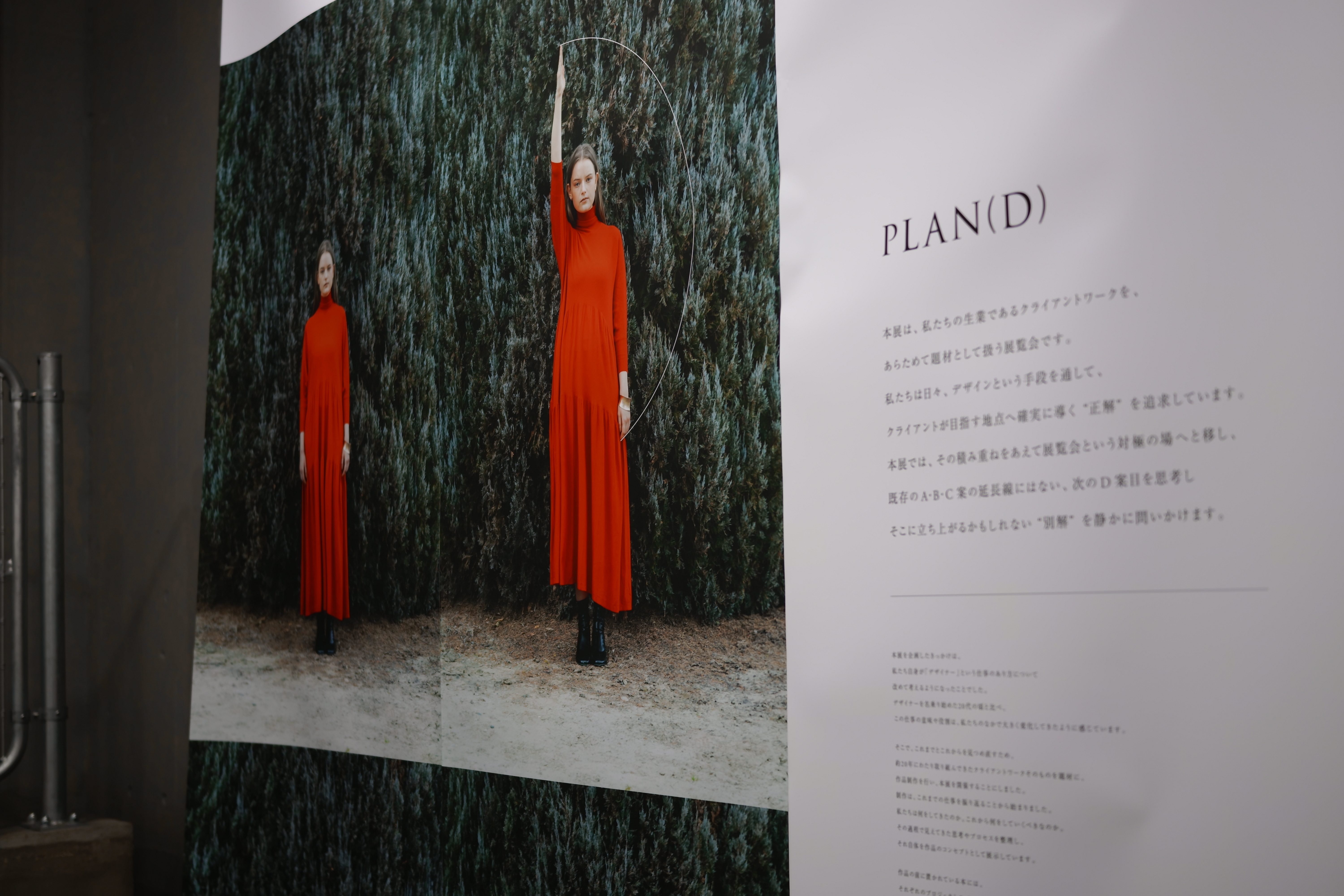 私たちは日々、デザインという手段を通して、クライアントが目指す地点へ確実に導く”正解”を追求しています。本展では、その積み重ねをあえて展覧会という対極の場へと移し、既存のA・B・C案の延長線にはない、次のD案目を思考し、そこに立ち上がるかもしれない”別解”を静かに問いかけます。