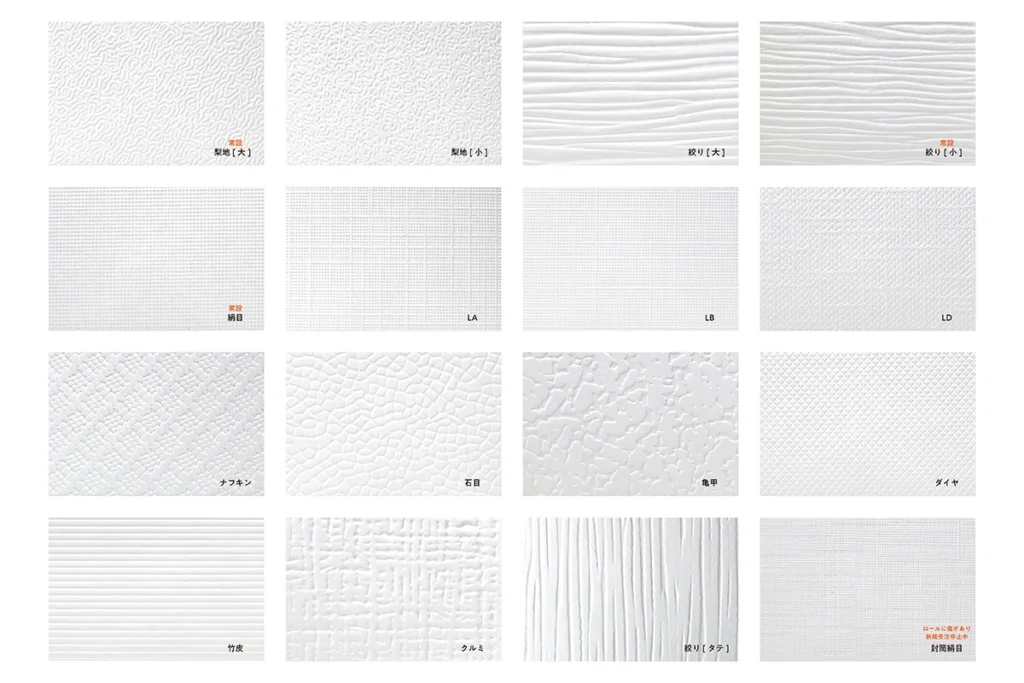 柄の種類が多く、紙の種類によって風合いが変わるロールエンボス加工は、個人的に“推し加工”です!実際にお手元で見てみたい方は、「紙加工見本帖」がおすすめです。弊社のオンラインストアで取り扱っておりますので、ぜひチェックしてみてくださいね。