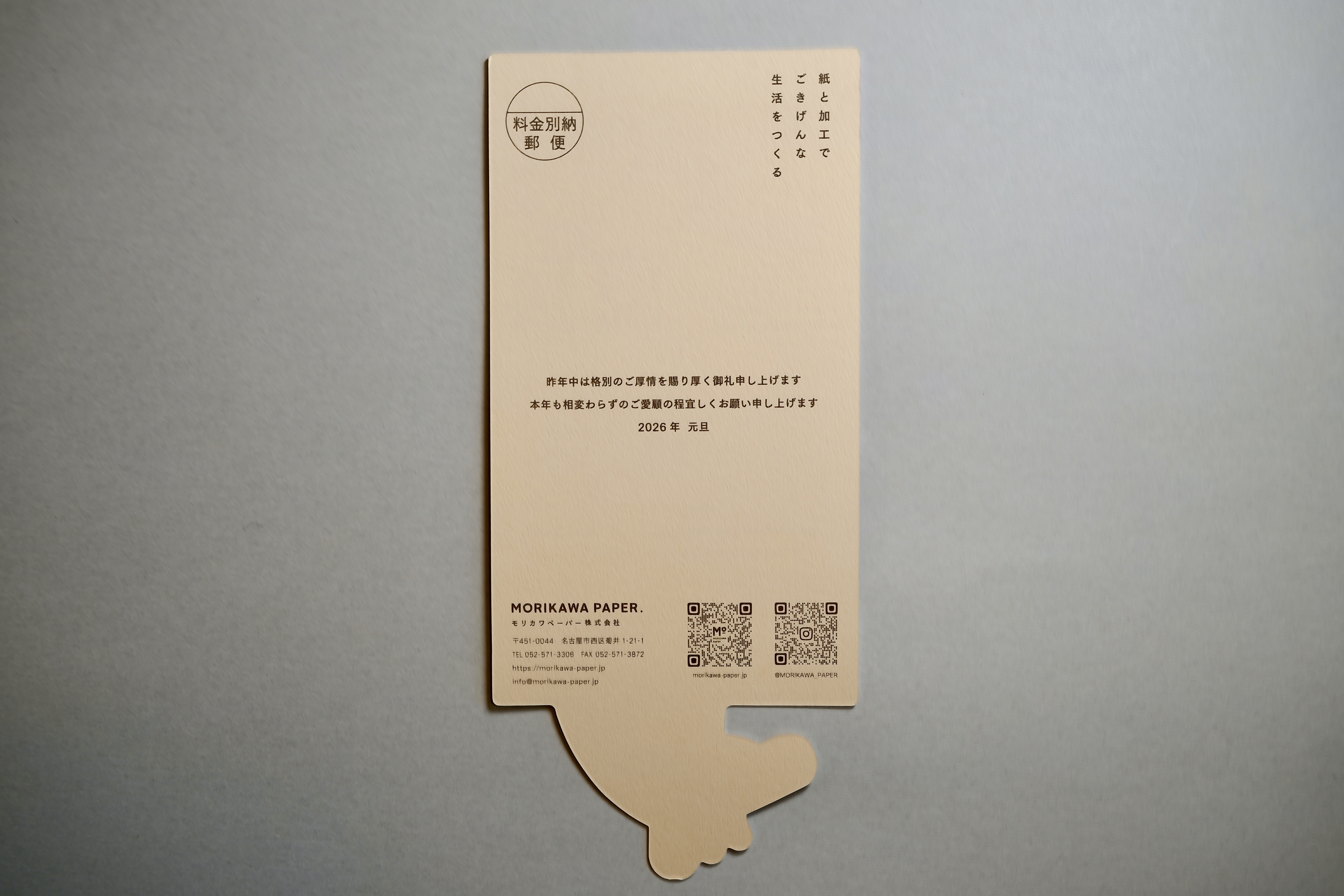 | 用紙 | ウマ面:TANT N-9 四六判<100>kg 芯材:バガスシュガーF 四六判<265>kg 住所面:TANT N-13 四六判<100>kg |